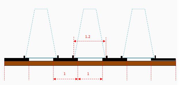 路基和液槽的宽度相同,同为1 m。栽培架 底1.2m,高1.5m, 顶0.4m。